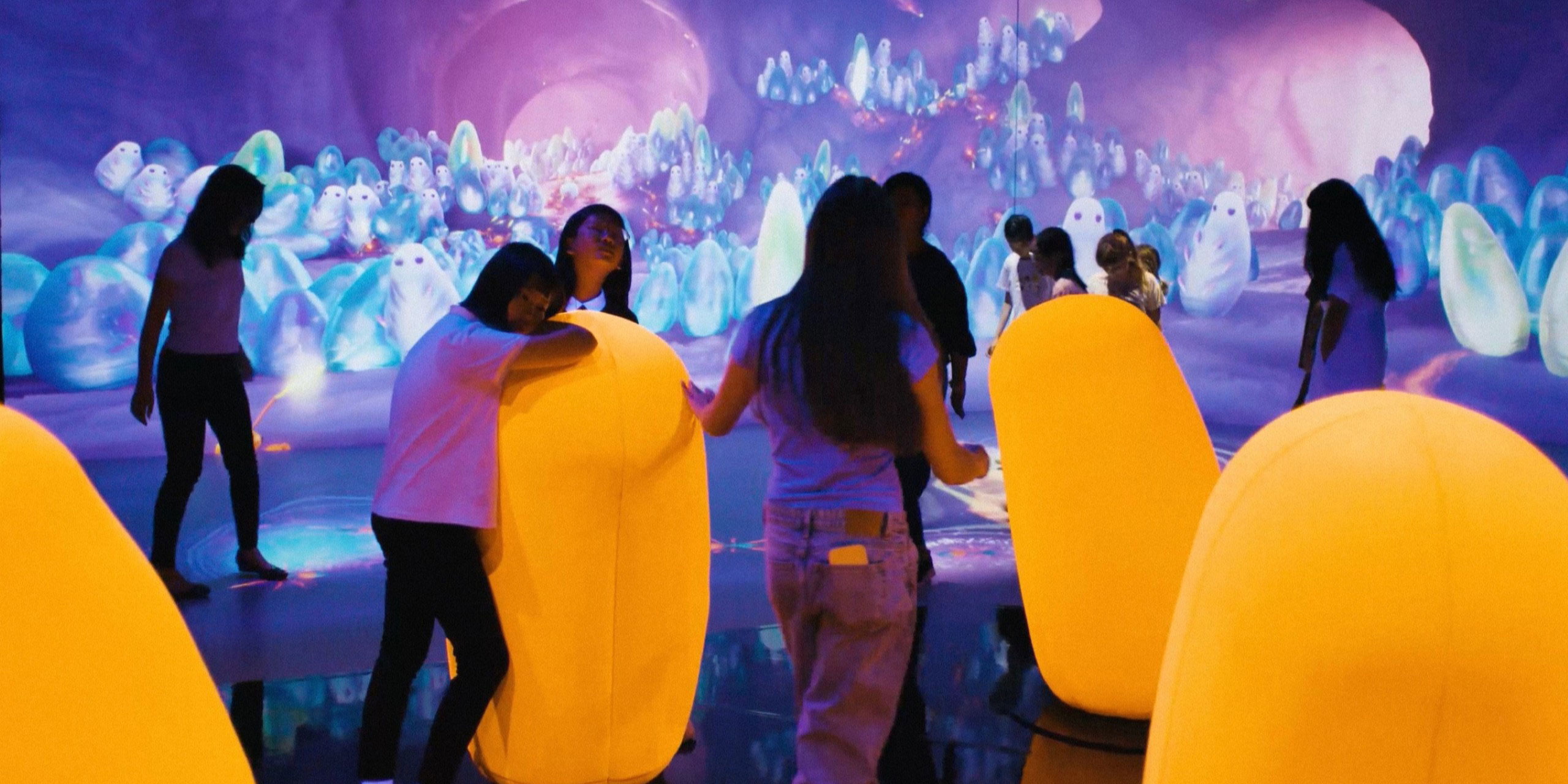 The communication design team faced the challenge of interpreting pheromone communication—an invisible, scent-based language—into an accessible, multisensory format. Through innovative use of motion-tracking and responsive projection, they developed a vibrant visual system of colour trails that respond to visitor movement. This transformed a complex biological process into a participatory and intuitive game mechanic, supporting exploration, understanding, and emotional connection.