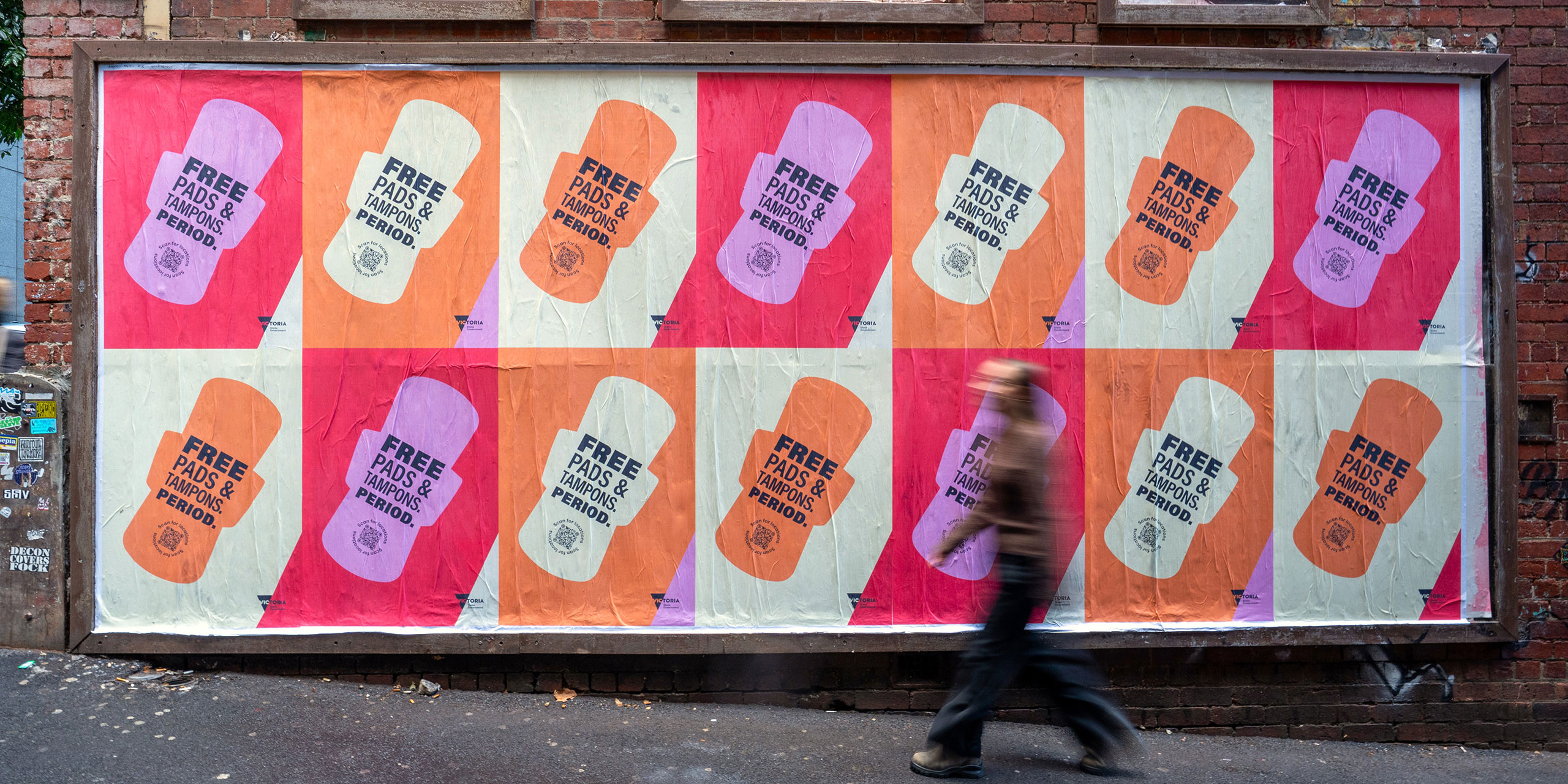 When the campaign went public, we developed street posters that plastered pads and tampons across Victorian walls, hitting another campaign objective of normalising periods. These posters used striking repetition and were designed to be rolled out in grids. We also produced animated reels for social media to improve awareness and engagement.