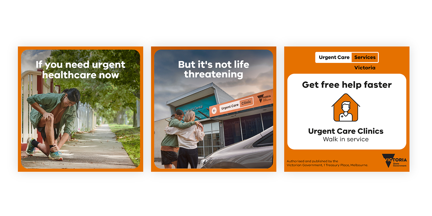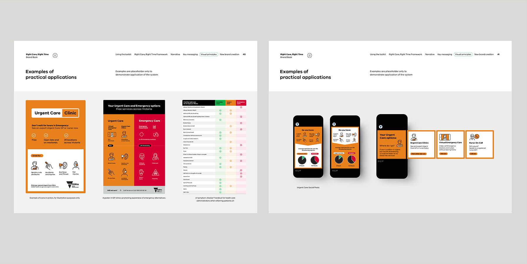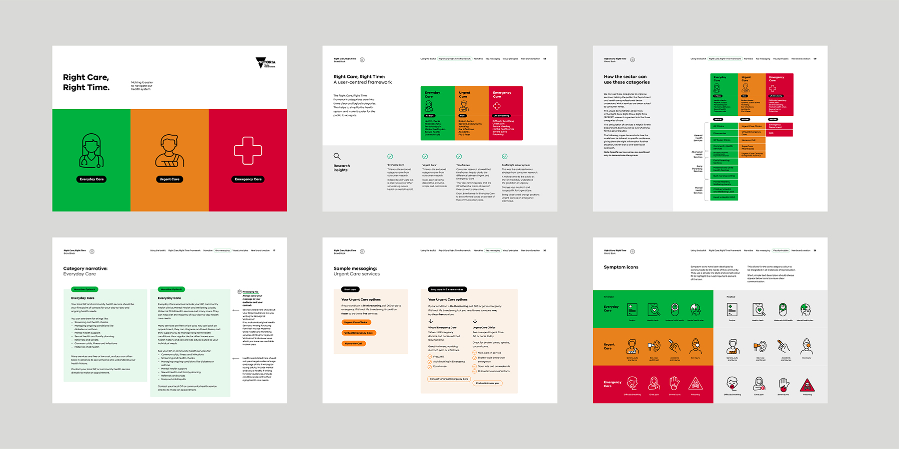 The easy-to-understand visual hierarchy supports information delivery across multiple channels, from 30-second ads to detailed web resources at urgentcare.vic.gov.au.