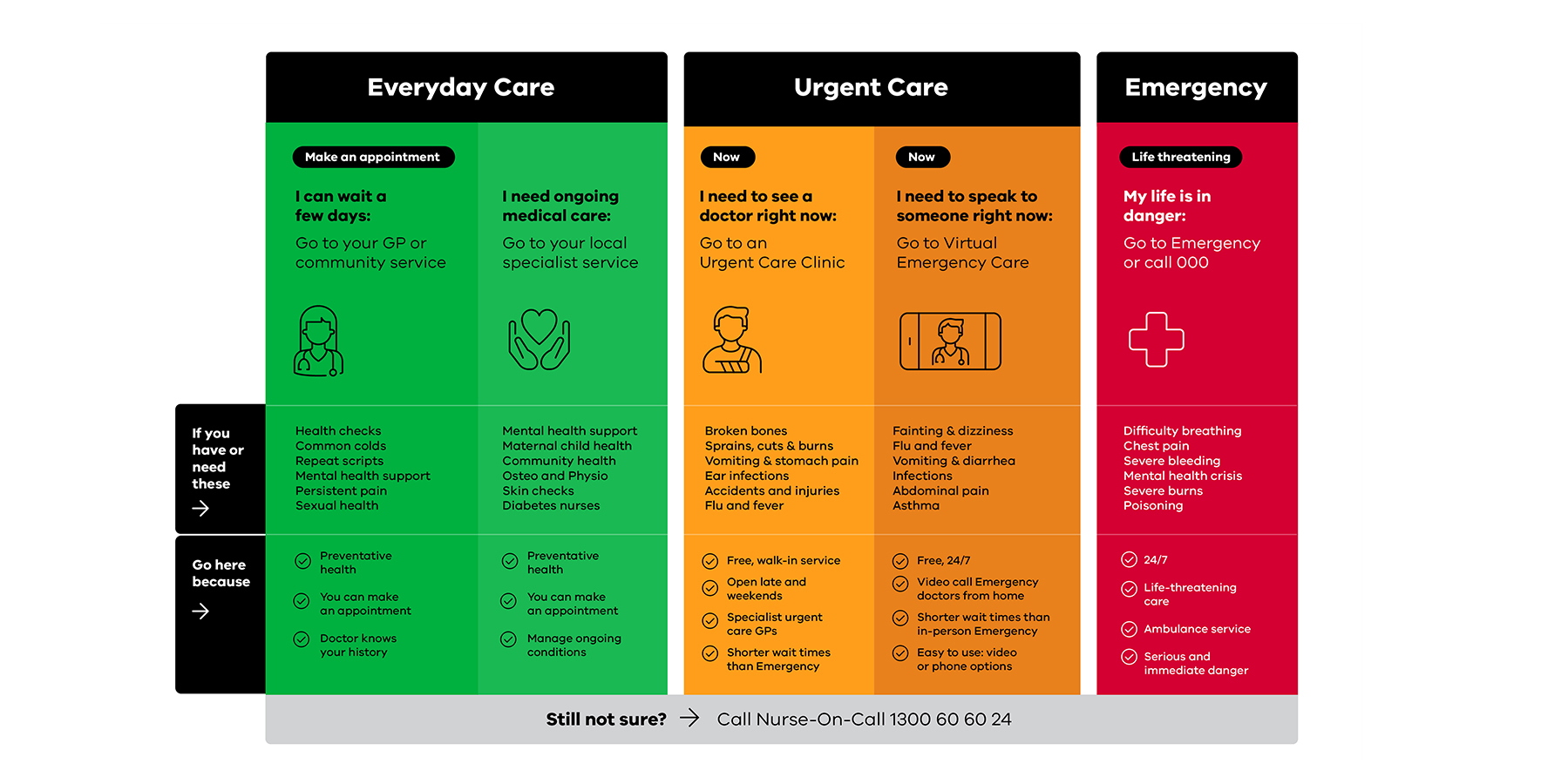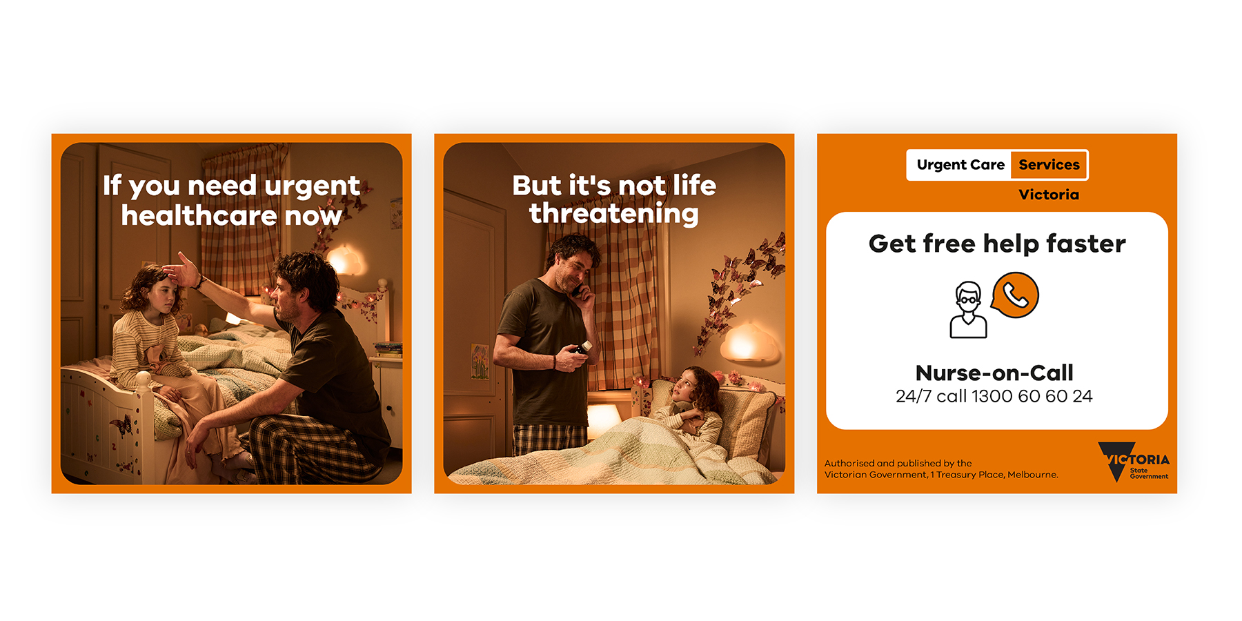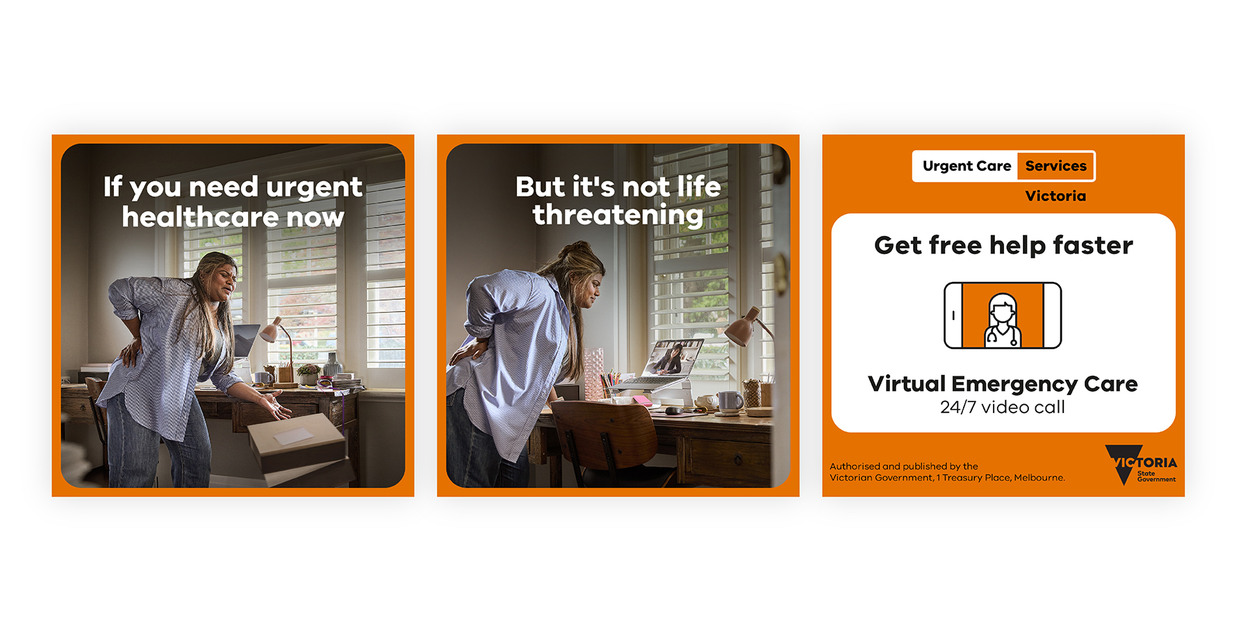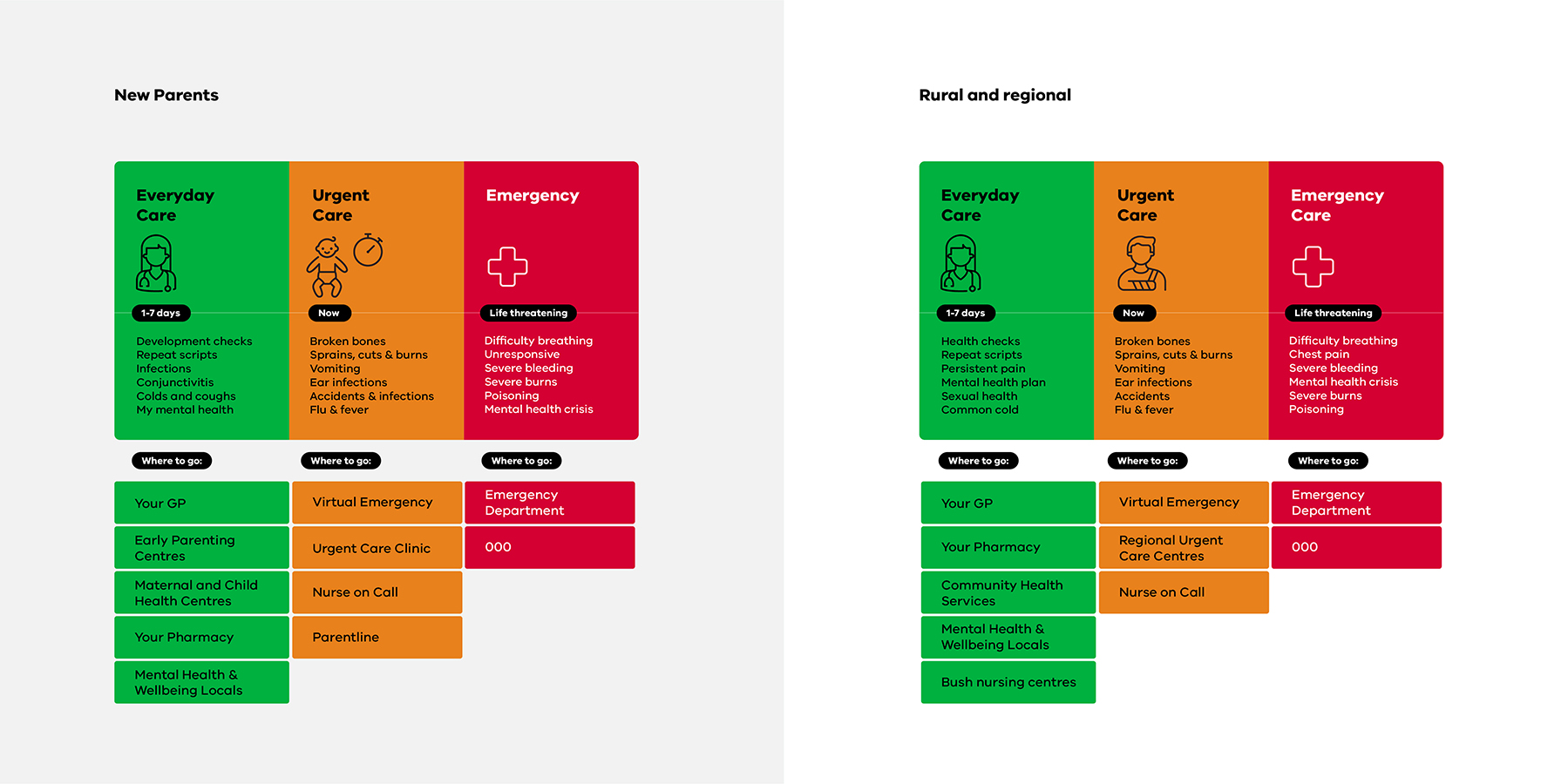 The easy-to-understand visual hierarchy supports information delivery across multiple channels, from 30-second ads to detailed web resources at urgentcare.vic.gov.au.