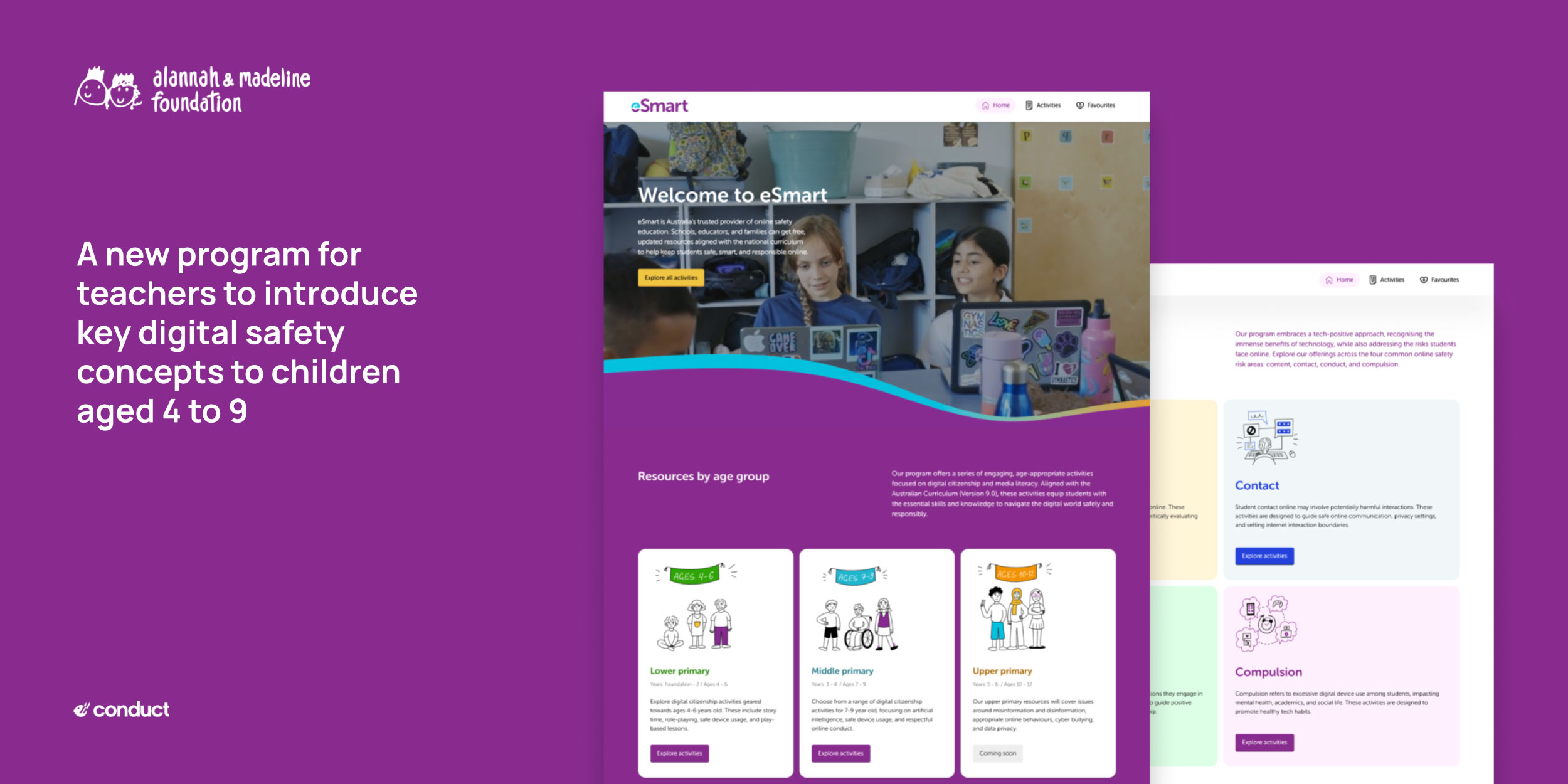 Students move through the journey in class, using storytelling, colouring and conversation. Their goal is to reach “Digital Licence HQ” and earn their certificate and celebrate a moment of recognition that feels like an achievement. Language and visuals were shaped by early learning experts, then tested with real students to make sure everything landed clearly. We designed characters and scripts that children could connect with and built in playful progression markers to keep them engaged. Webflow allowed for fast updates and helped us meet federal timelines without cutting corners on design.