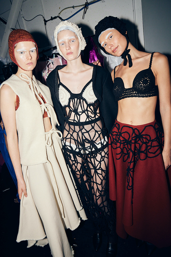 The design process for this collection began as methodical and iterative, rooted in a rigorous analysis of my grandmother’s traditional Macedonian costume. The process commenced with archival research, examining the woven adornments, domestic hand-crafted customs, and ornamental configurations of the historical garment. Each element of the costume — Koshula, Klashenik, Prestilka, Elek, Samifche, and Kojstek — was deconstructed into individual components to investigate construction techniques, layering systems, and traditional methods such as crochet and trapunto embroidery.