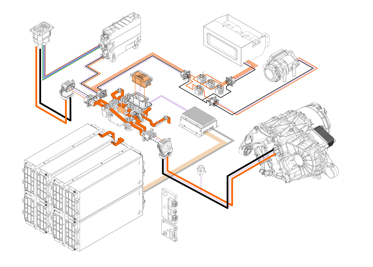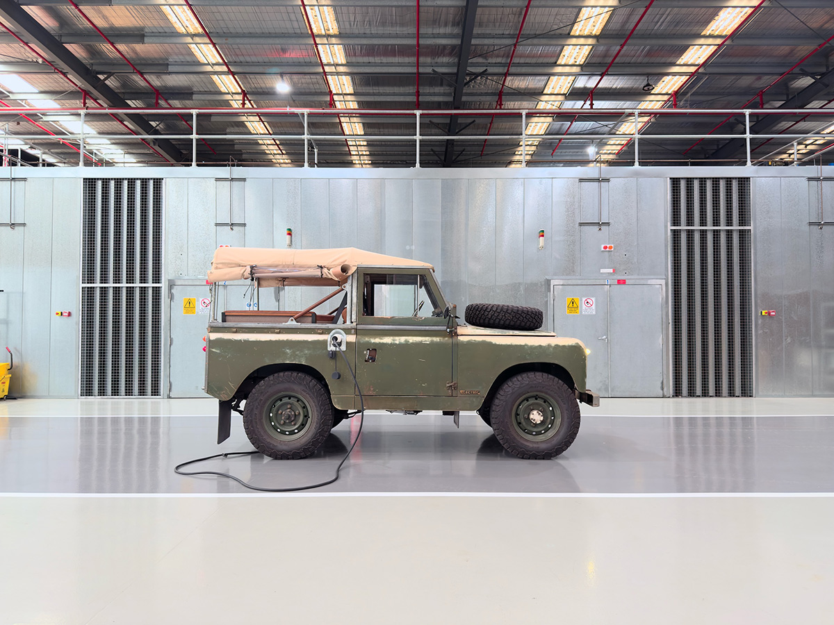 Every system - brakes, driveline, climate control and low-voltage architecture - was designed from scratch to integrate with the original chassis and body. The 400V drivetrain uses a Tesla Model 3 unit rotated and re-geared to deliver permanent AWD through a torque-biasing diff. A single front-mounted 55 kWh battery pack in a 3 mm steel enclosure feeds the system, with CCS2 delivering 70 kW DC fast charging and 6.6 kW AC charging.