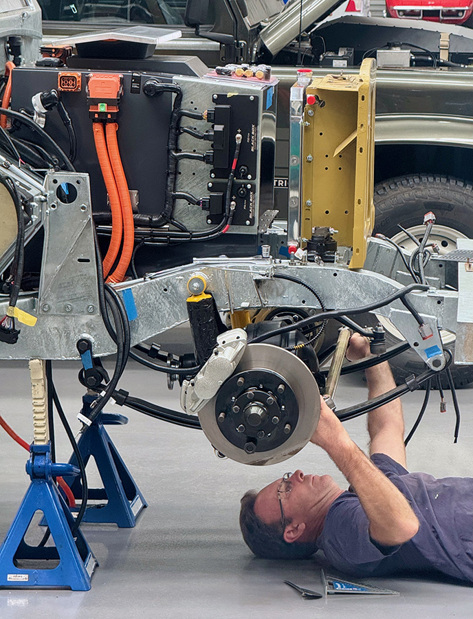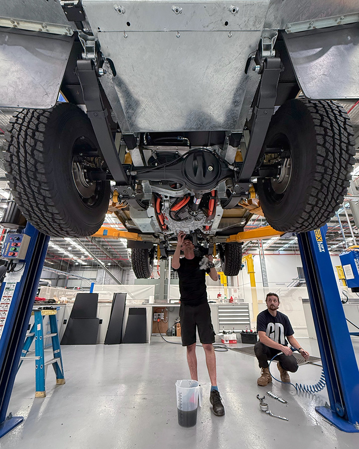 Vehicle assembly uses a repeatable bill of process - with jigs, laser-cut brackets and CNC-finished parts. Battery packs and wiring looms are pre-assembled, reducing time on vehicle. The process enables repeatable builds in Jaunt’s Melbourne workshop while keeping costs and time down.