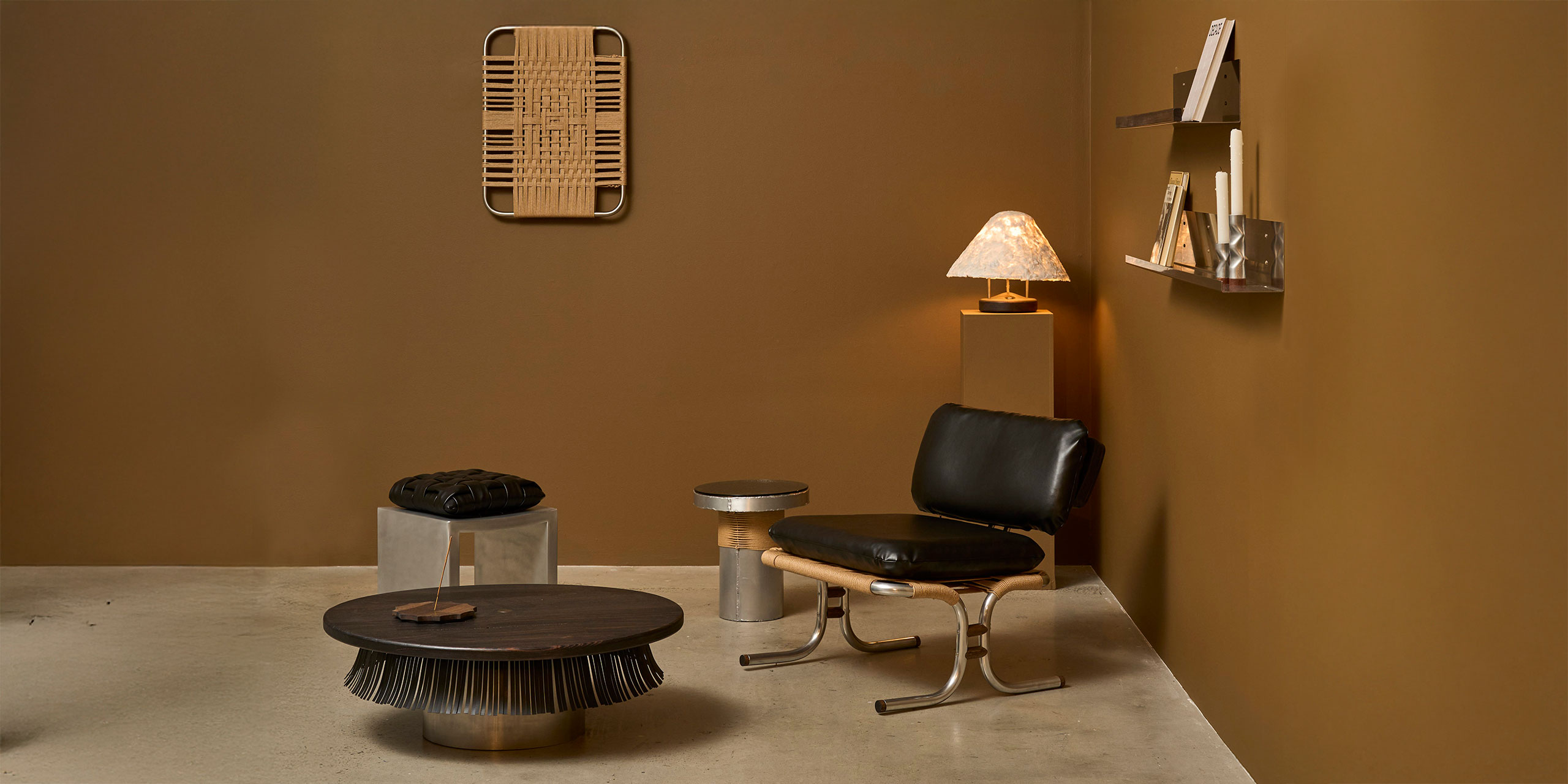 I created 10 pieces across furniture, decorative objects, lighting and storage which explore the potential of repurposing discarded resources. The collection addresses harmful logging practices, metal waste, textile waste, food waste, substitutes for upholstery foams, alternative leathers, and every piece can be easily deconstructed into base components for repair, repurposing or recycling.